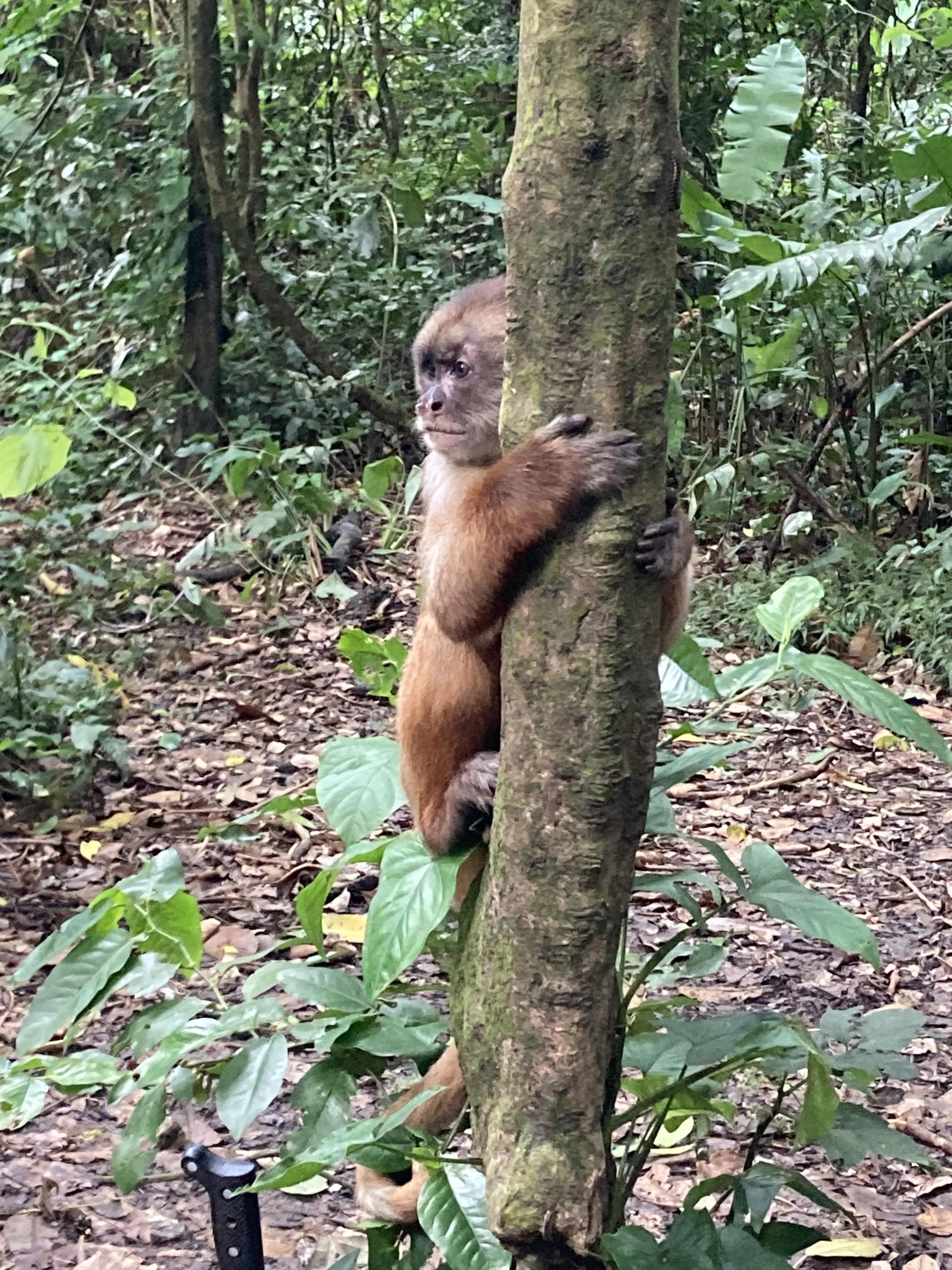 The next day, we visited a tribe of monkeys on an island preserve made especially for them. There were four types: Howler monkeys, the white capuchin, the brown capuchin, and the spider monkey. The founder of the preserve rescued and brought them to the island, where they were doing well and reproducing. In the wild, brown and white capuchins don't usually breed, but on the island they have. We fed the mothers carrying their tiny babies swinging freely in the trees. The babies hold tightly onto their mothers' backs for a year until they became independent.